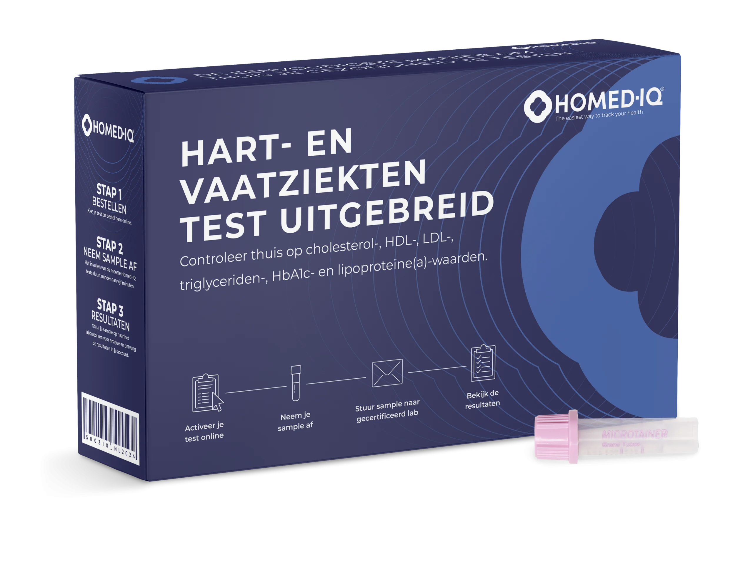 De Hart- en vaatziekten test van Homed-IQ wordt geleverd met alles wat u nodig heeft om thuis met succes een bloedmonster af te nemen. Activeer eenvoudig je test en volg de bijgeleverde instructies om het sample af te nemen en stuur het vervolgens naar ons gecertificeerde laboratorium met behulp van het gefrankeerde verzendlabel. De resultaten zijn binnen een paar dagen beschikbaar.
